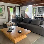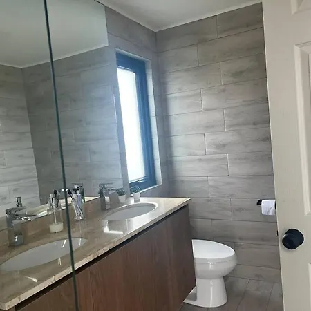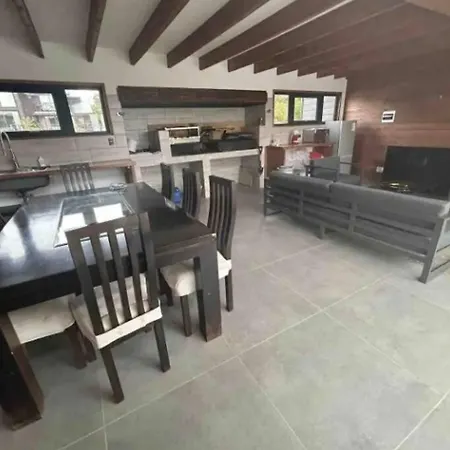 Offering a Jacuzzi for a relaxing experience, Casa Nueva En Country Pucon Con Piscina Y Quincho Compartido Con Casa Gemela Villa is located 10 minutes' drive from Plaza de Armas de Pucon. The 3-bedroom villa features opportunities for snow skiing in the area, 2.7 km from Buses Caburgua.